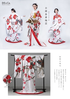 春の美しい息吹を感じるような赤梅が生き生きと描かれています。力強いタッチと美しい構図はアートそのもの。婚礼にぴったりな紅白のデザインでありながら、唯一無二のオリジナリティに溢れています。