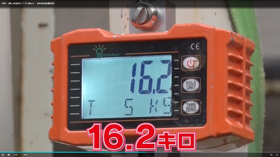ゴミを集めて柴田さんと2人で計測すると、なんと16.2kgもの重さに。