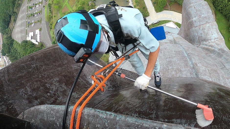 牛久大仏の清掃は体力勝負。世界に誇るシンボルを守るため、田口さんの挑戦は続きます。