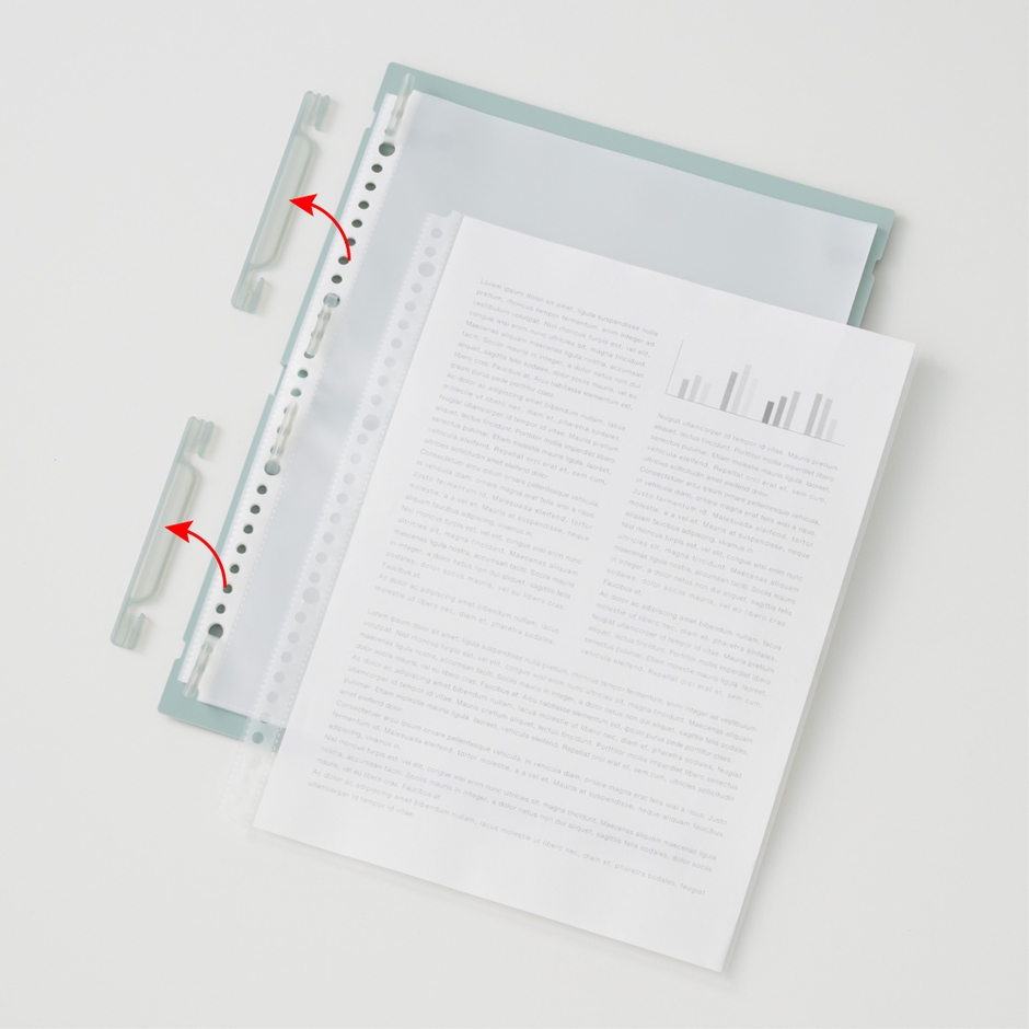 半分に折りたたんで持ち運べる交換式クリヤーブック。