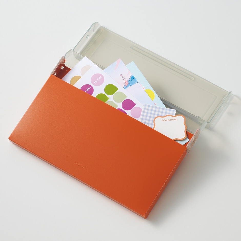 材質:本体(不透明)・フタ(色透明)/ポリプロピレン(本体生地厚:0.75mm)、見出し紙/上質紙、見出しカバー/PET