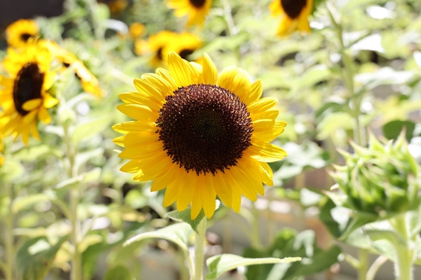 医誠会国際総合病院の屋上で行われている都市養蜂のミツバチたちもひまわりの花の蜜を集めに訪れていました。花の中に顔をうずめたり、羽を休める様子も観察できました。