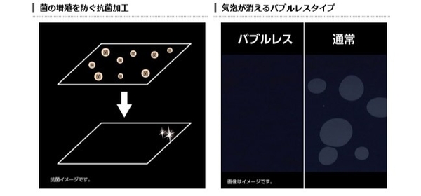 【気泡が消えるバブルレスタイプ(特殊吸着シリコン層)】