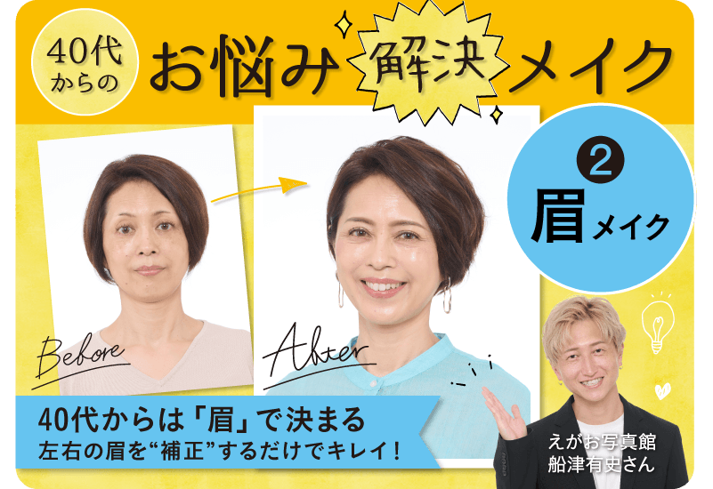 年齢とともに薄くなったり、たるみや表情のクセなどによって左右の高さや角度に差が出てしまう〝年齢眉″。40代からは肌だけでなく眉のお悩みもより深くなってきます。