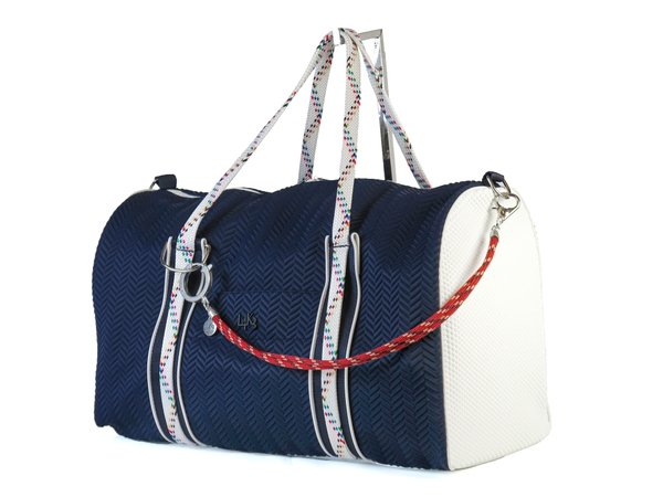 こちらはボストンバッグシリーズの中でも人気色「ネイビー/ホワイト」BOS-04JPのサンプル商品。