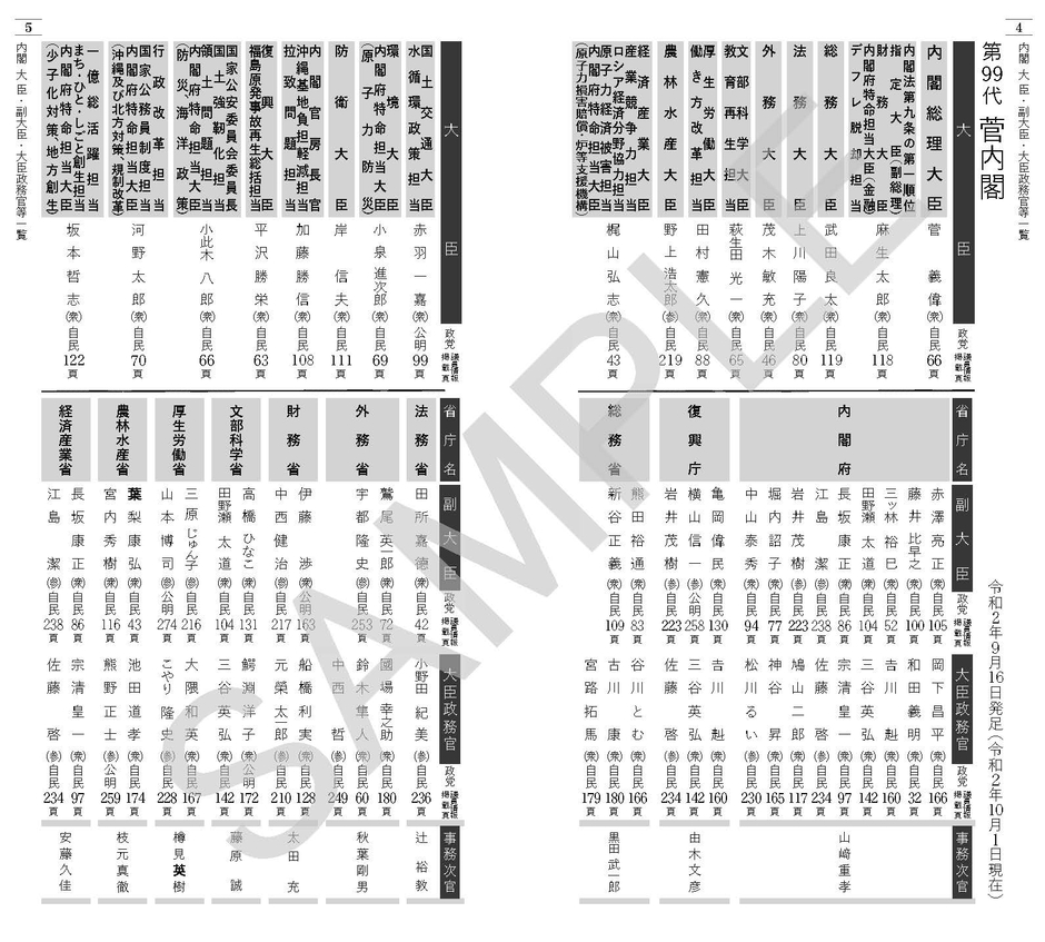 この度、株式会社国政総覧刊行会(東京都千代田区、代表取締役:築地 正)は『国政総覧』令和2年10月版を刊行いたしました。
