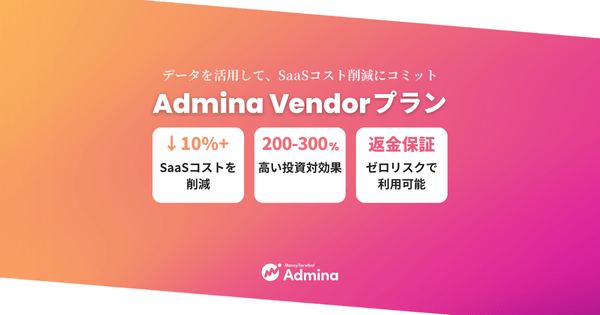 マネーフォワードi株式会社(以下「当社」)は、『マネーフォワード Admina』において効率的なSaaS購買を実現するベンダー管理サービス「Admina Vendor」プランを提供開始します。本プランでは、サービス利用料と削減できなかったコストの差額を返金する「コスト削減返金保証」も実施します。