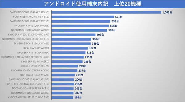また、スマートフォンの種類としては、いわゆるアンドロイド端末が7割、2023年に対応をはじめた iphoneは2年で3割まで一気に増えました。