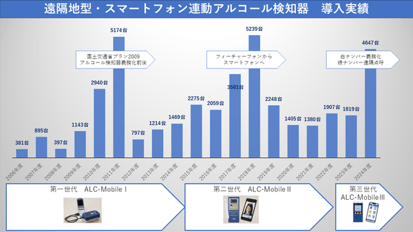 スマホを使ったアルコールチェックが広まる。前年比200%以上増、4,000台を超える実績に。