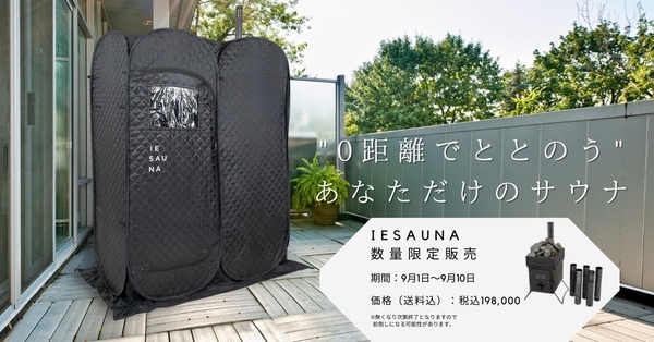 煙の出ない家庭用テントサウナ「IESAUNA」が販売開始後わずか6分で完売!10月1日の次回予約販売を急遽9月10日に前倒し決定!