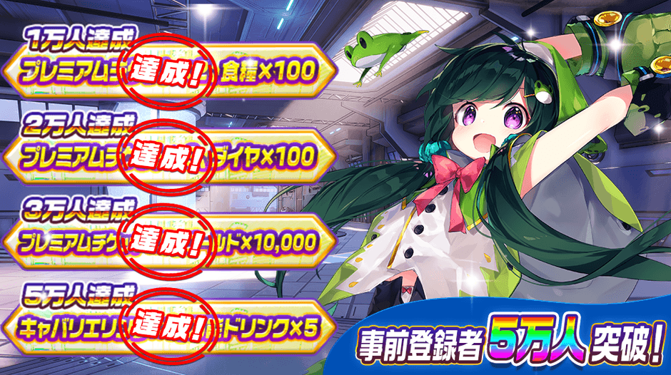 今ゲームを開始すると、事前登録キャンペーン5万人突破の報酬を獲得できます!
