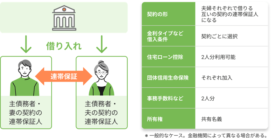• ペアローン:同じ物件に対して夫婦それぞれが別々に住宅ローンを契約する方法。