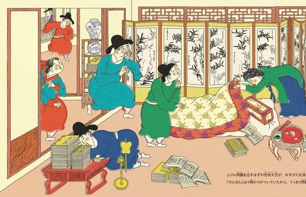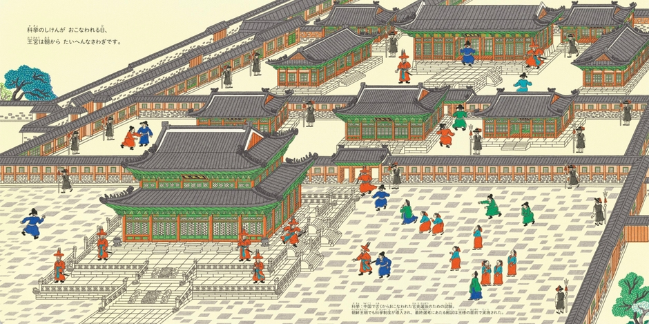 科挙の試験がおこなわれる日、 王宮は朝からたいへんなさわぎです。