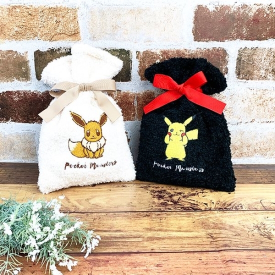 ポケモンのキュートで暖かい、巾着入り靴下をご覧いただきました。