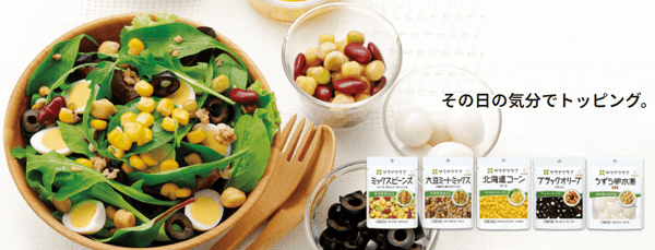 「サラダクラブ 素材パウチ」シリーズは、豆や穀物、北海道コーン、うずら卵など全19品の豊富なラインアップでサラダや料理をおしゃれに演出します。さまざまな素材を組み合わせることで、おいしさ、食べ応え、栄養バランスがアップします。