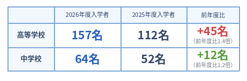 また、高校入学予定者157名のうち70名が寮生で、県内に加え県外からも入学します。寮生活を通じて日常生活そのものを学びの場とする教育を行っており、主体性や創造性を育む教育を展開しています。地方にありながらも、新しい学びの環境を求めて県外から進学する動きが広がっています。