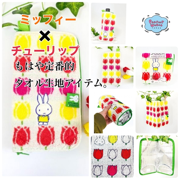 ミッフィー×チューリップはもはや定番かも。こんなにオシャレなのに持ってないなんてもったいない!なタオル地アイテム。