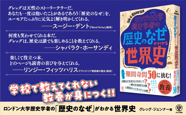 株式会社かんき出版(本社:千代田区 代表取締役社長:齊藤龍男)は、『ロンドン大学歴史学者の「歴史のなぜ」がわかる世界史』(グレッグ・ジェンナー/著 木村 高子/訳)https://kanki-pub.co.jp/pub/book/details/9784761276775を2023年6月21日より全国の書店・オンライン書店等(一部除く)で発売いたします。