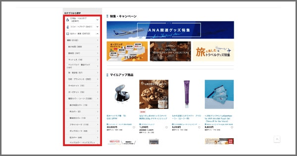 『ANA Mall』は、約3,800万人のマイレージクラブ会員を有するANAグループが運営するECモールで、直営店に加え国内有数のショップも数多く出店するほか、食品・家電・家具など多彩な商品を展開しています。
