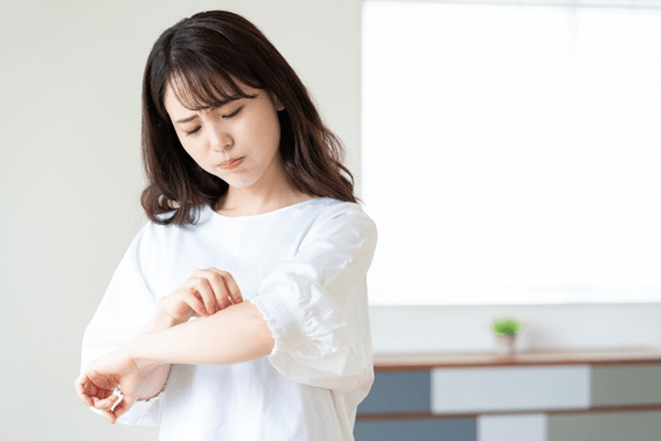 肌には元々異物の侵入を防いだり、体内の水分が逃げるのを防いだりする働きが備わっていますが、生活習慣の乱れや誤った保湿ケア、気候の変化、加齢などによって肌の水分量が減少すると、「手がかさつく」「入浴後に肌がつっぱる」「すねが粉をふいたようになる」といった症状がみられる、いわゆる「乾燥肌」になってしまいます。体に乾燥が見られる場合は、顔も乾燥している可能性が高くなります。