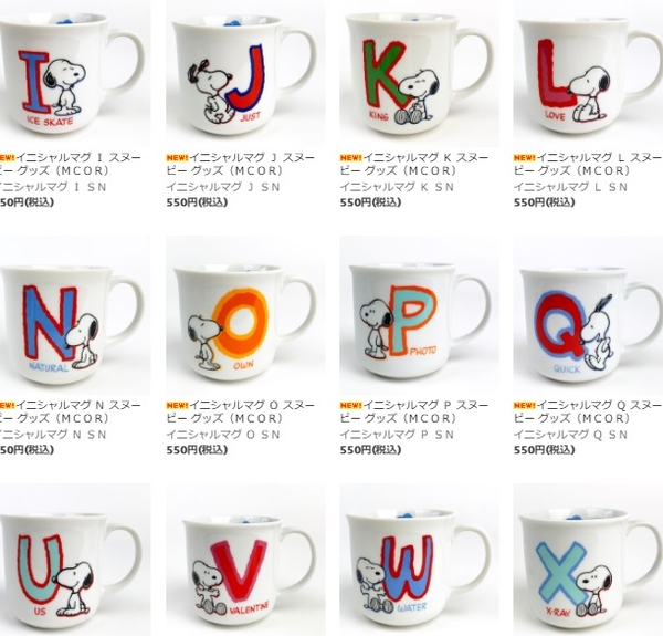 もちろん、スヌーピーのイニシャルマグもありますよ♪