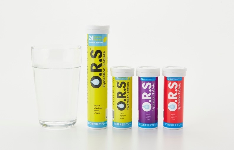 本イベントにおいて、当社は株式会社アドバンスと共同で、水に溶かすだけで経口補水液を作ることができる経口補水塩タブレット「O.R.S」の展示を行います。