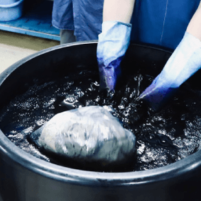 Factory藍は、精神障害・知的障害のある方々が、藍染・織り・刺子製品などを製作する、就労継続支援B型事業所です。世田谷若林に工房を構え、主に下北沢の直営店にて販売しています。Japan blueとも呼ばれる日本伝統工芸の藍染、海外からのお客様にも浸透しつつある日本のステッチ刺し子、藍染グラデーションの糸を縦糸に使い、横糸は藍染服の裁断残布を裂いて織った裂き織など、メンバーさんと共に楽しく製作している工房です。