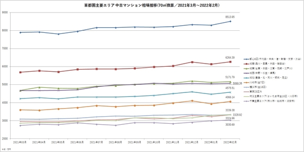 ■主要エリア 中古マンション相場推移(2021年3月~2022年2月)