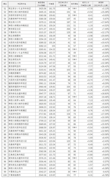 ・100位以内の市区で、前月と比較して坪単価が上昇したのは68市区。