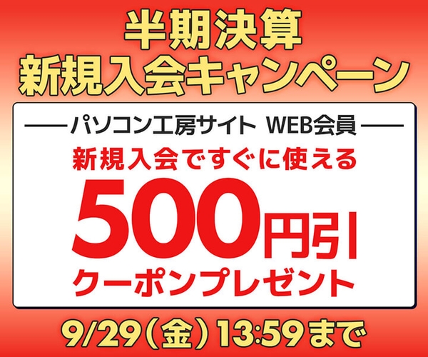 パソコン工房WEBサイト、WEB会員新規入会で 500円引きWEBクーポンがもらえるキャンペーンを実施