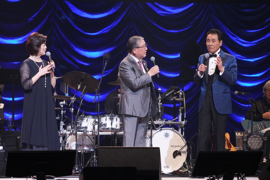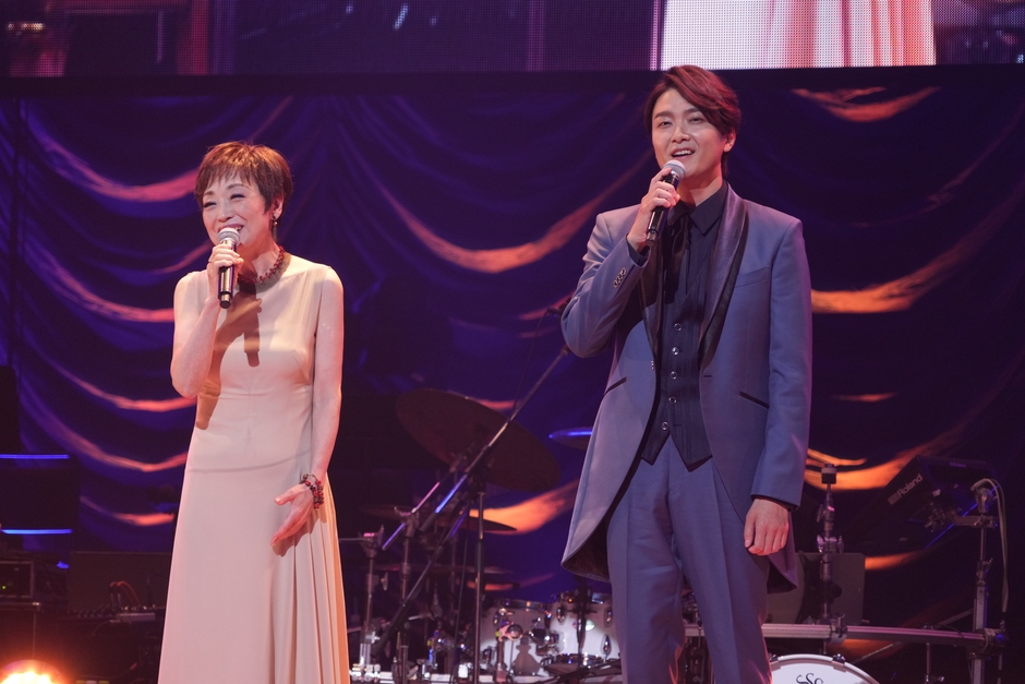 続いて登場したのは多くのヒット曲を生み続けている五木ひろし。ブレイクするきっかけとなった「よこはま・たそがれ」、「日本レコード大賞」を受賞した「夜空」を歌い、「デビューは早かったんですがなかなかヒット曲に恵まれず」と初期の頃を振り返りつつ、「「よこはま・たそがれ」に出会い、そこから出遅れた分、とにかく取り返そうとしてきました。必死に歩いてきて60周年を迎えました」と60周年を迎えたことを報告すると会場から大きな拍手が起こった。