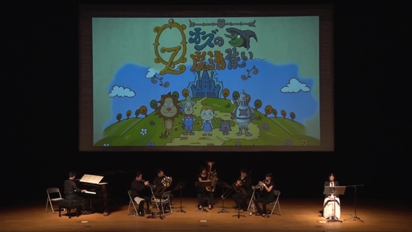巨大スクリーンに「動く絵本」が映し出され、金管アンサンブルやピアノの演奏、有名声優さんの朗読などが盛り上げます。見て聴いて楽しむコンサート。今回の絵本は「オズの魔法使い」です。
