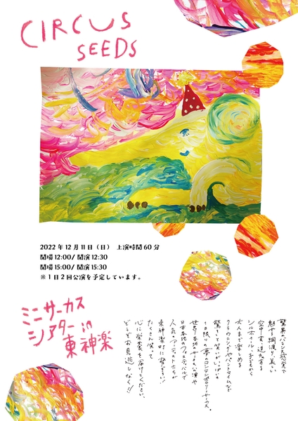 『ミニサーカスシアターin東神楽 CIRCUS SEEDS』が2022年12月11日(土)に東神楽大学 体育館(北海道上川郡)にて開催されます。チケットはカンフェティ(運営:ロングランプランニング株式会社、東京都新宿区、代表取締役:榑松 ⼤剛)にて11月7日(月)より発売開始です。