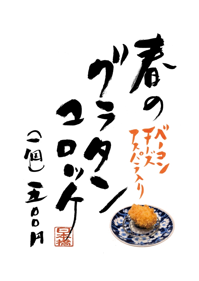 2022年4月1日(金)に「春のグラタンコロッケ」を新発売致します。自家製のベシャメルソースに「ベーコン、アスパラ、チーズ」などを入れた特製クリームコロッケです。さくっと揚げた中にとろっとしたクリーミーな食感をお楽しみ下さい。※日本橋高島屋店限定商品です。売り切れの際はご容赦ください。