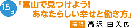 15日のセミナーは「富山で見つけよう!あなたらしい幸せと働き方」。