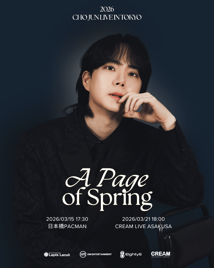 そしてその余韻が残る中、チョ・ジュンは翌日となる2026年3月21日(土)、同じくCREAM LIVE ASAKUSAにて単独公演「2026 CHO JUN LIVE IN TOKYO『A Page of Spring』」を開催する。