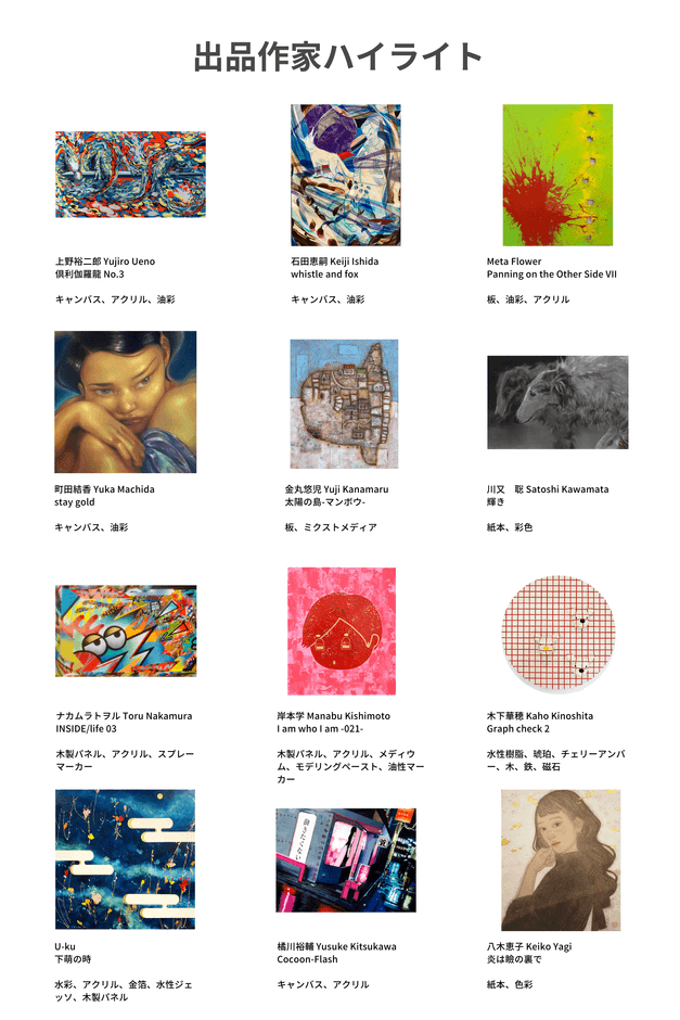 様々なアーティストからご出品いただいており、一度にあらゆるジャンルの作品に出会えます。