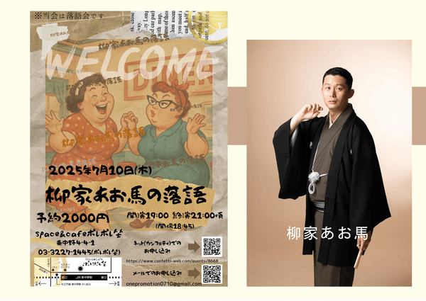『柳家あお馬の落語』が2025年7月10日 (木)に東中野ポレポレ坐(東京都中野区東中野4丁目4-1 ポレポレ坐ビル1F)にて開催されます。