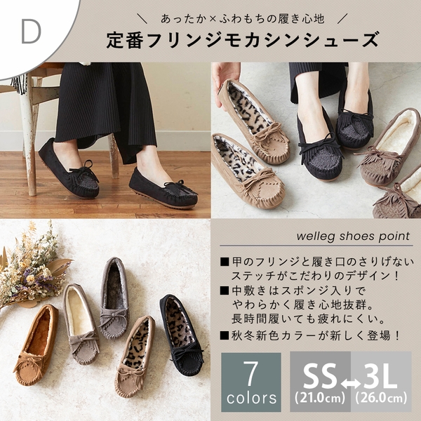 リボンやフリンジのデザインのない、シンプルなモカシンシューズ。今季はボアの新色も加わり、かわいらしい印象に。内側のファーがレオパード柄のカラーも。シンプルな中にも、カラーリングで遊び心やトレンドを表現したい方に。