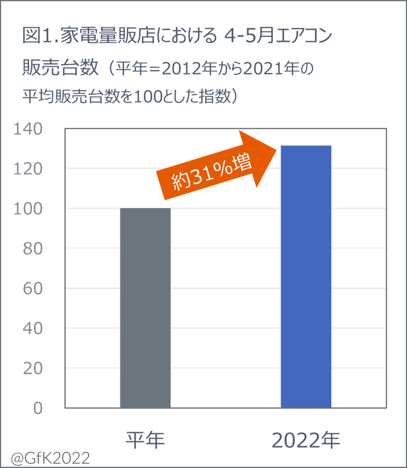 GfK Japan(東京:中野区)は、全国の家電量販店の販売実績データを基に、2022年4‐5月期エアコン*1市場の販売速報を公表した*2。