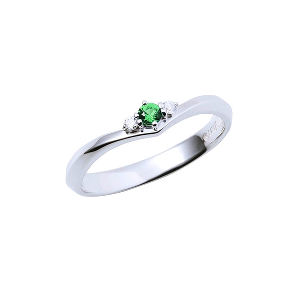 V字フォルムにイメージカラーストーンをセットしたシンプルなデザイン。