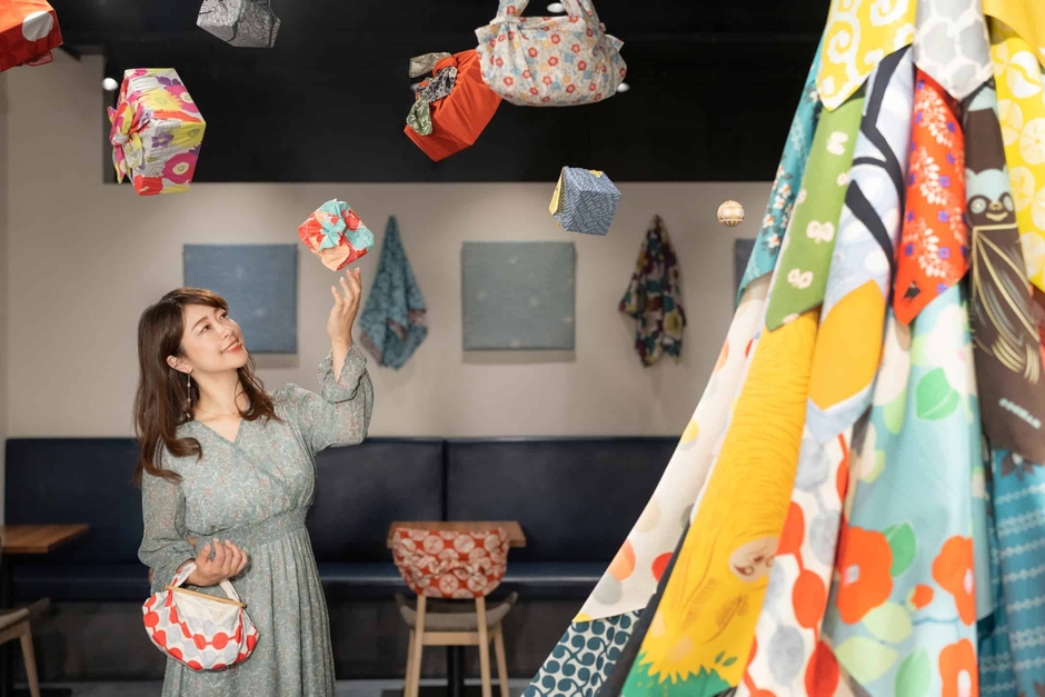 OMO5京都三条より徒歩約7分のご近所さん。全国でも数少ない風呂敷専門メーカー「山田繊維株式会社」が展開する風呂敷専門店です。OMOで毎日開催するガイドツアー「京町らんまん老舗さんぽ」の訪問先として、日々交流を深めるなかで、旅を豊かに過ごしてほしいという思いが共通したことから、当イベントが実現しました。日本の心が育んできた「ふろしき」という美意識を、進化し続ける生きた文化として、世代を超えて伝えることを使命と考え、商品開発と共に普及活動を行っています。