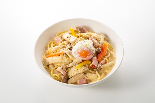 「ベーコンとしめじの濃厚カルボナーラセット」