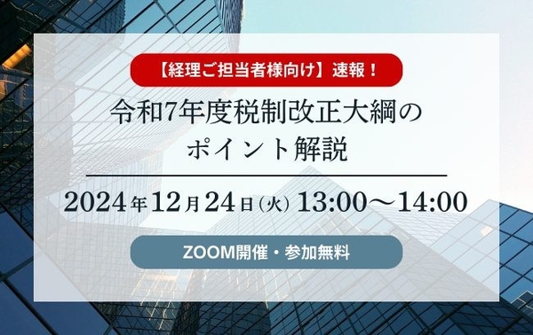 みらいコンサルティンググループ(本社:東京都中央区、代表:久保 光雄 岡⽥ 烈司)は、2024年12月24日にセミナー『令和7年度 税制改正大綱のポイント解説』をWEBにて開催します。