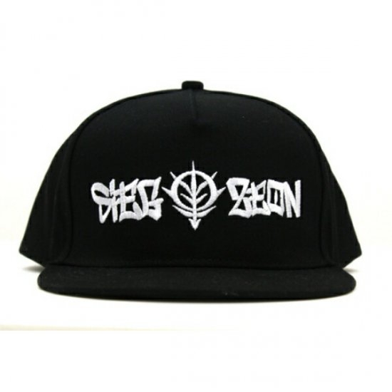おつぎはジークジオン刺繍のフラットバイザー帽子!こちらもなかなかの一品です。ガンダムを知らない人から見たら普通のカッコいい帽子だけど、じつは。。。という最高にしびれる帽子です。