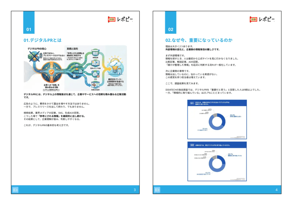 ワンストップでレポートマーケティングを実現する「レポピー®️」(https://ideatech.jp/service/report-pr)を提供する株式会社IDEATECH(本社:東京都港区、代表取締役社長:石川友夫)は、「デジタルPR入門ガイド」を無料公開しました。
