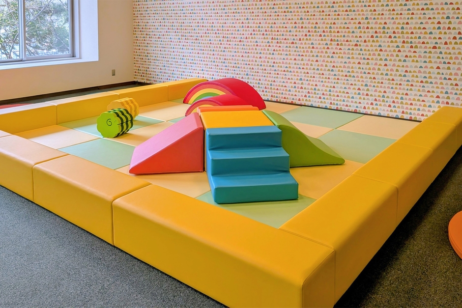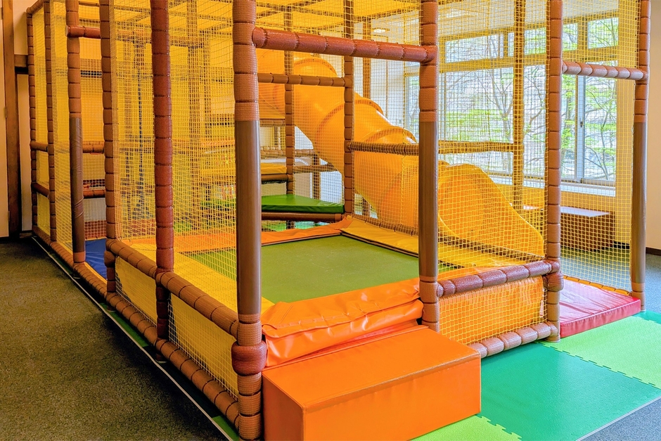 こちらのエリアにも、バランス遊具や小さいすべり台など、ぶつかってもケガをしにくいウレタン製とEVA素材の遊具を設置。赤ちゃんでも安心して動き回れるスペースになっています。