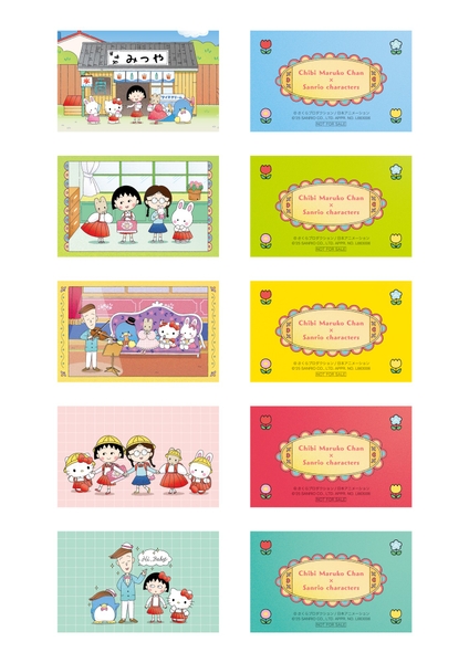 ちびまる子ちゃん×サンリオキャラクターズのコラボグッズを含む『ちびまる子ちゃん』関連商品を税込1,500円以上お買い上げ毎に、イラストカードをランダムで1枚プレゼントいたします。