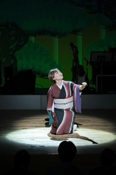 3月28日、歌手・山口瑠美にとって、第二の故郷である東京・三鷹にある三鷹市芸術文化センターで開催された「居酒屋瑠美〜三鷹で一杯いかが〜」は、恒例の割烹着姿の一人芝居で幕を開けた。