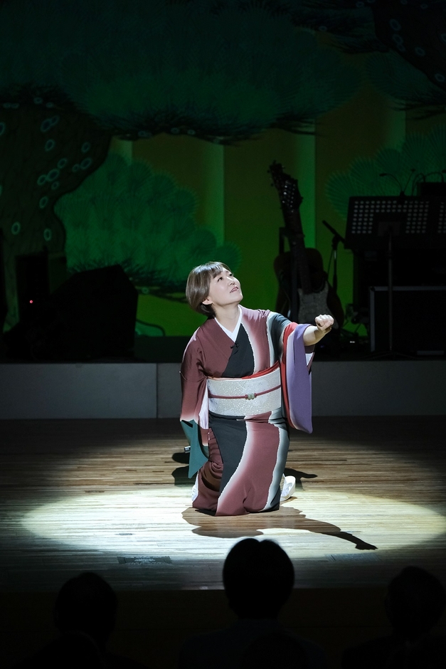 今年、3年ぶりに故郷、山口県岩国市への帰郷が叶ったと話す山口は「東京に戻っても自然に出てしまう方言に驚きながらも、その方言に違和感を覚える自分が寂しい」と話し、岩国の名所「錦帯橋」を舞台とした『雨の錦帯橋』、亡き父との想い出から、初めて詞を手掛けた『臥龍梅』を披露。